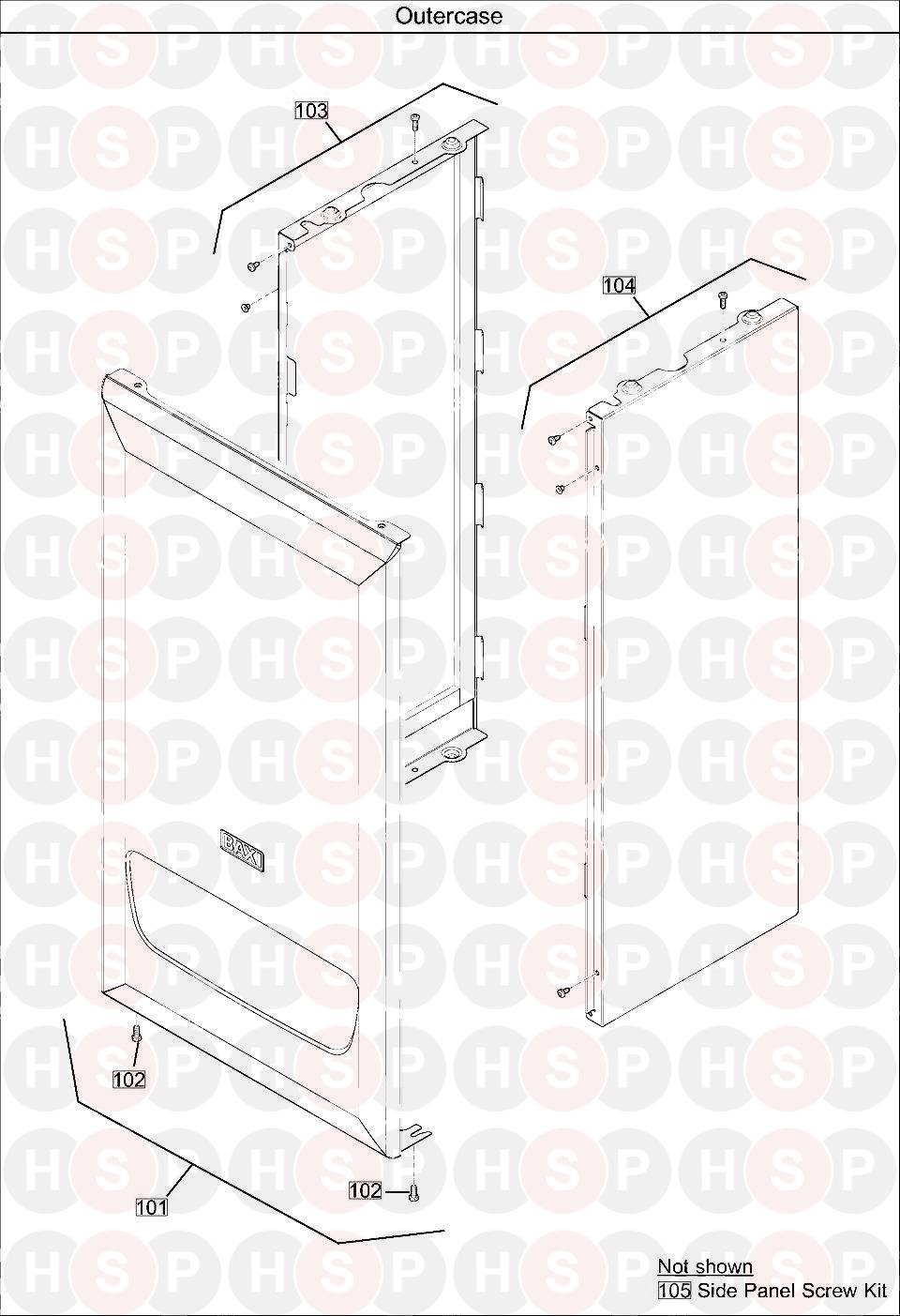 Outer Case diagram for Baxi 836 CombiClick the diagram to open it on a new page