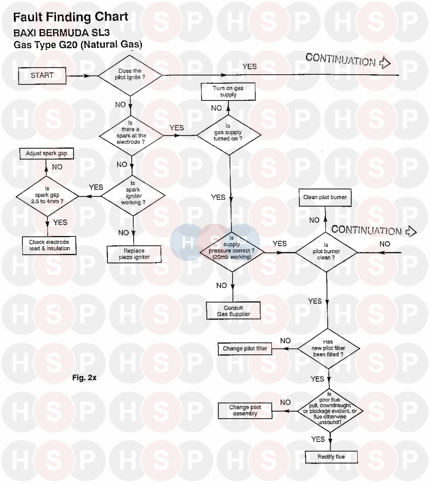Service Fault Finding Chart 1 diagram for Baxi Bermuda LFE5 SuperClick the diagram to open it on a new page