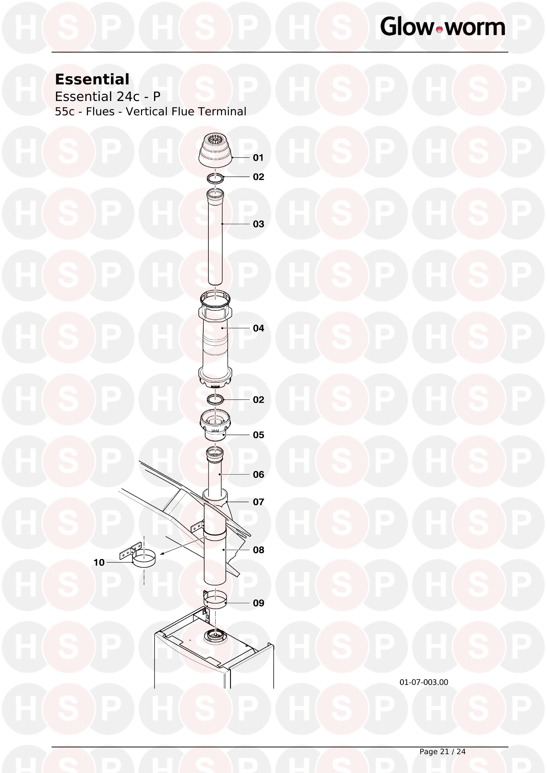 55C Vertical Flue diagram for Glowworm Essential 24c P 2016 OnwardsClick the diagram to open it on a new page
