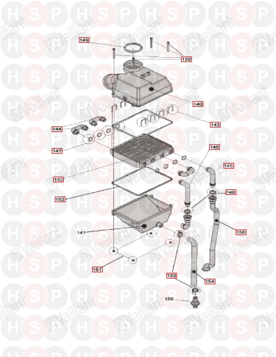 142 Part number D003201298, Secondary heat exchanger complete SECONDARY HEAT EXCHANGER COMPLETE