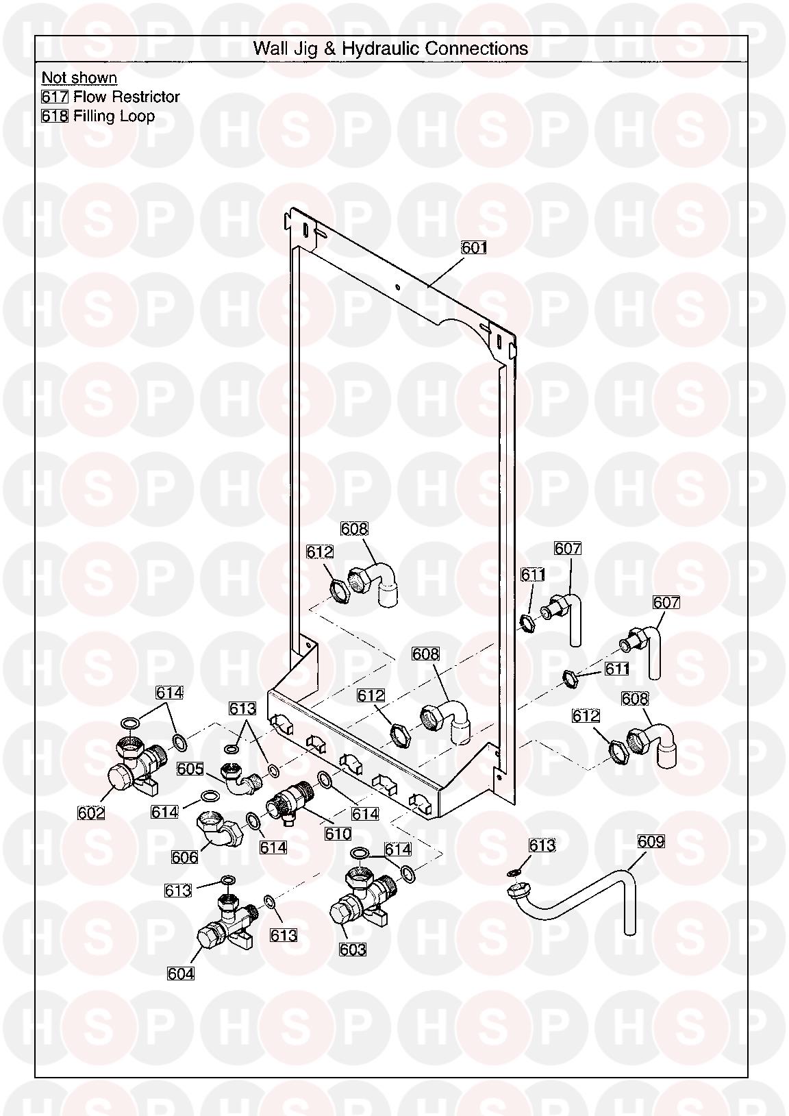 GOLD 28 COMBI ERP (SERIAL NO ENDING BC & CC) - (Wall Jig & Hydraulic Connections)