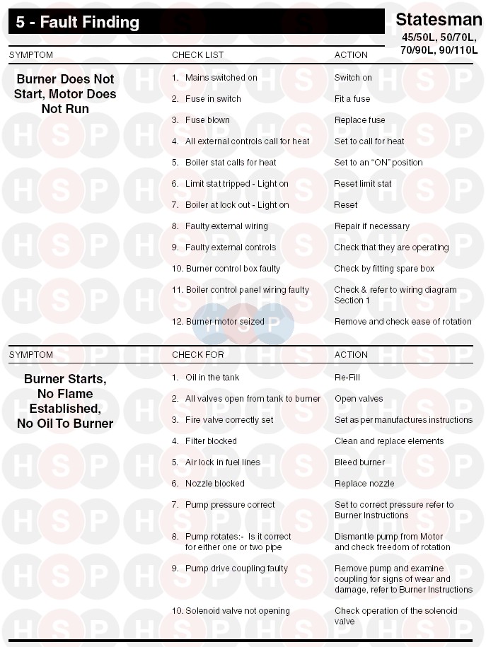 Service Fault Finding 1 diagram for Potterton Statesman 90-110LClick the diagram to open it on a new page