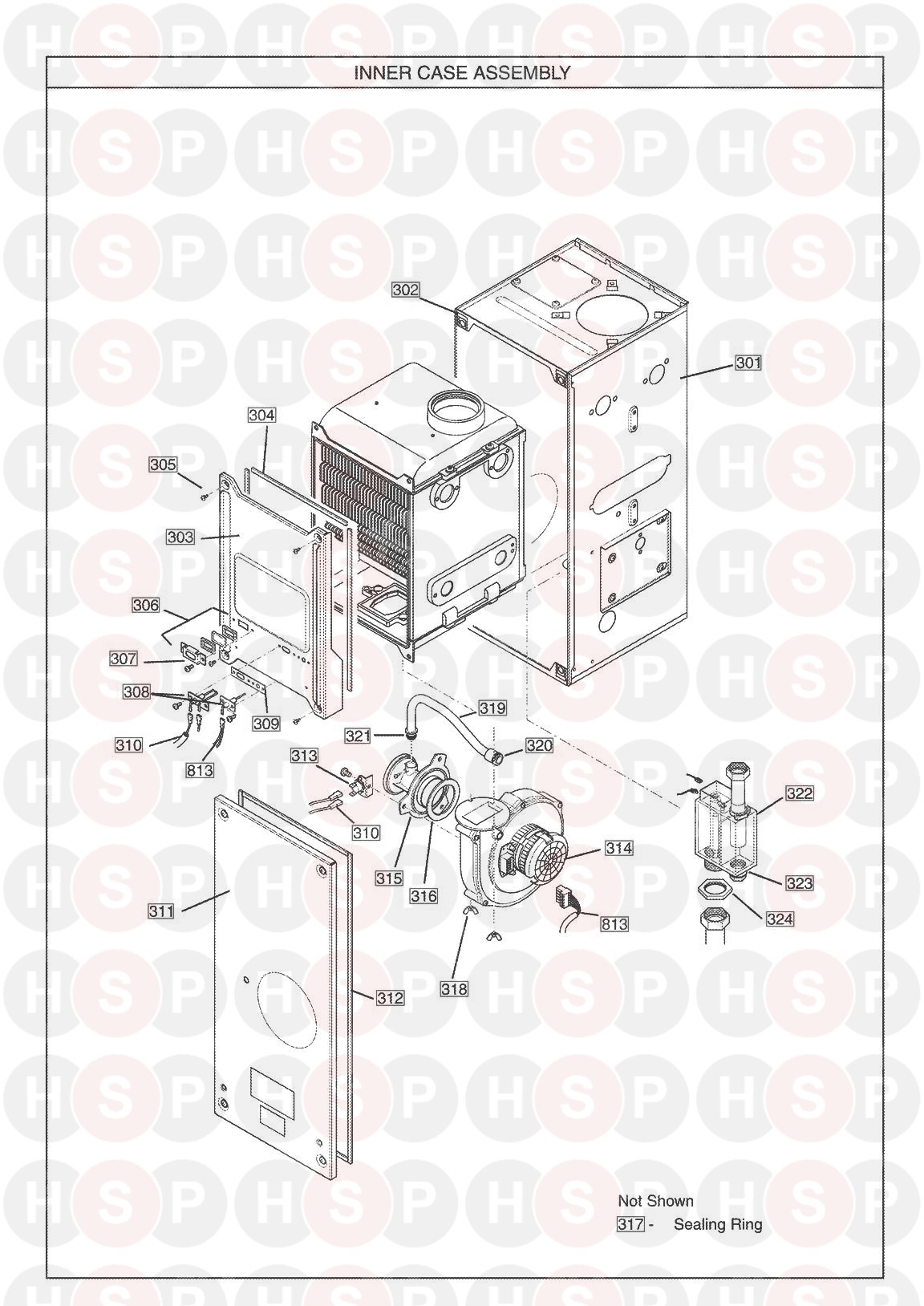 Inner Case diagram for Baxi Combi 100 HE PlusClick the diagram to open it on a new page