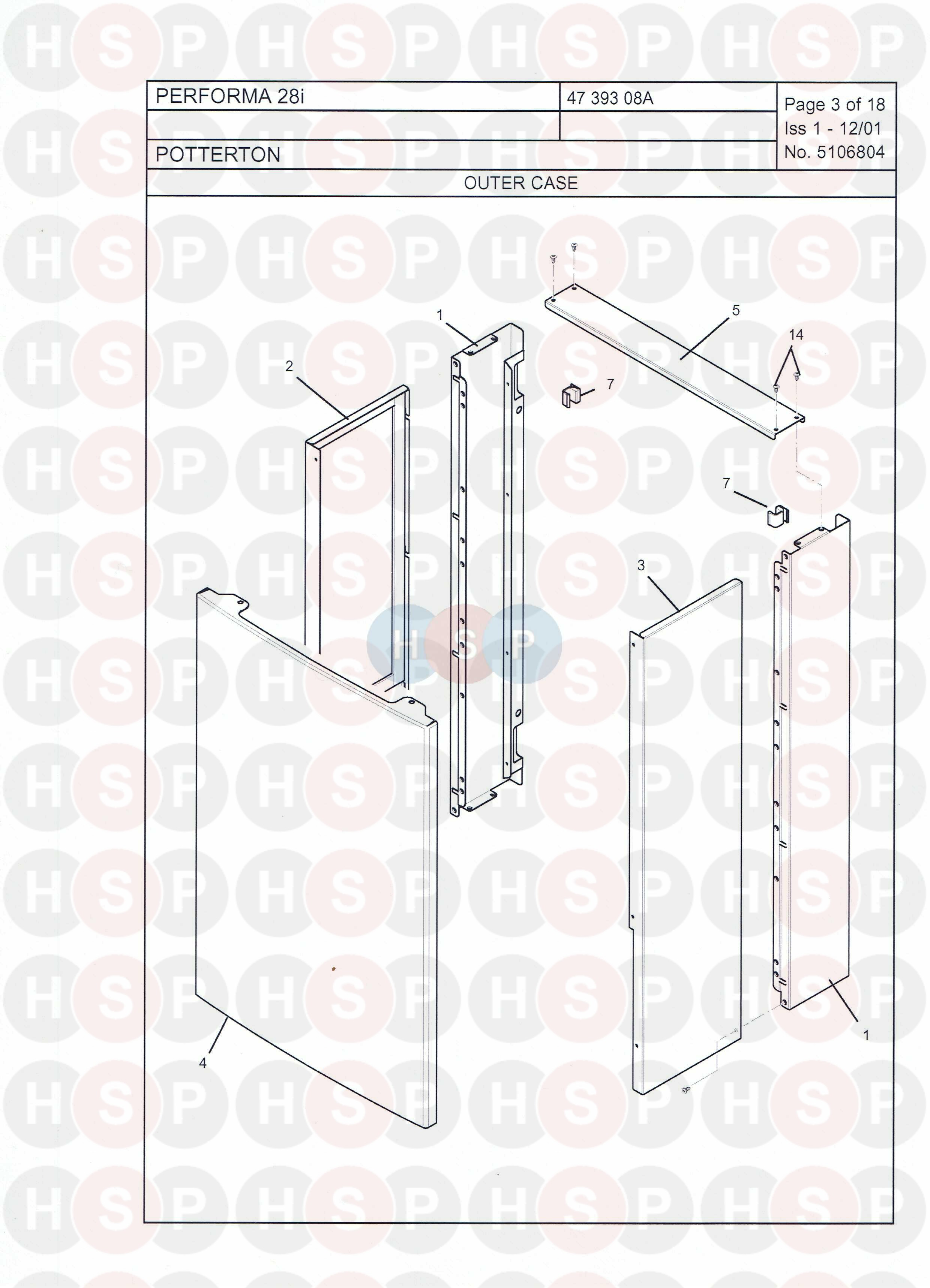 Outer Case diagram for Potterton Performa 28IClick the diagram to open it on a new page