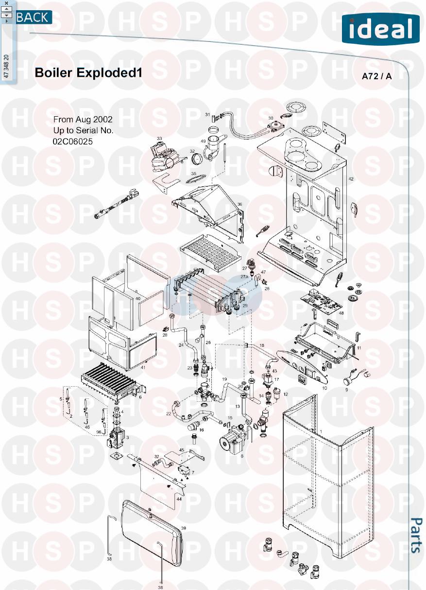 Boiler Exploded 1 From Aug 2002 Upto Serial NO 02C06025 diagram for Ideal Boxer C24Click the diagram to open it on a new page