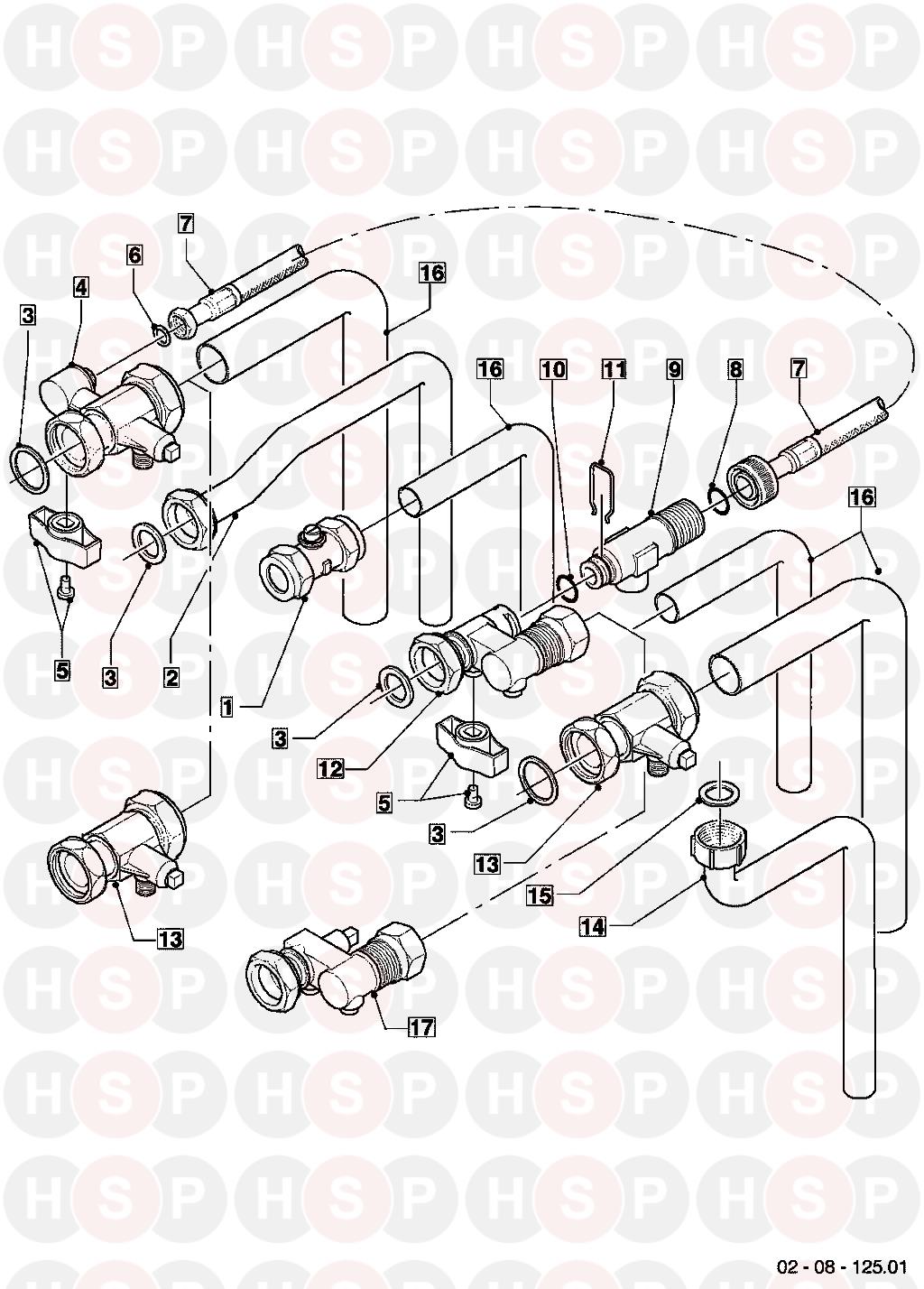 16 Part number 0020137082, KIT PIPES ECOTEC 5-5 COMBI BOILERS KIT PIPES ECOTEC 5-5 COMBI BOILERS