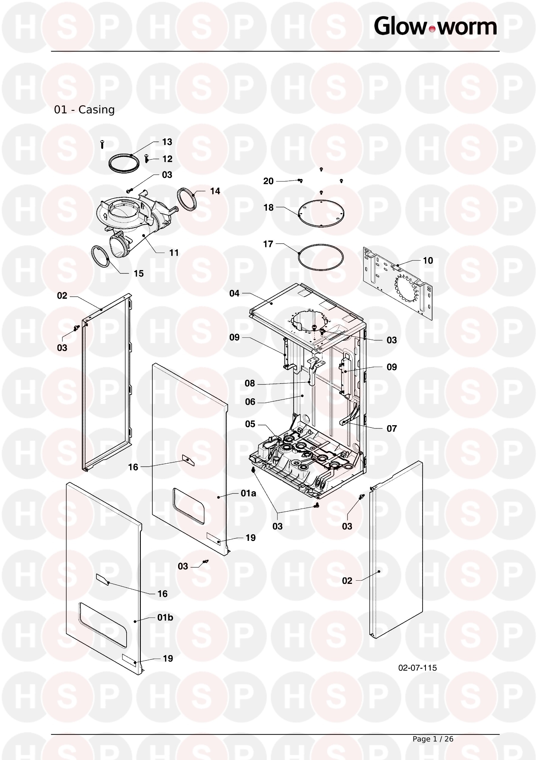 01 Casing diagram for Glowworm Energy 15s 2015 OnwardsClick the diagram to open it on a new page