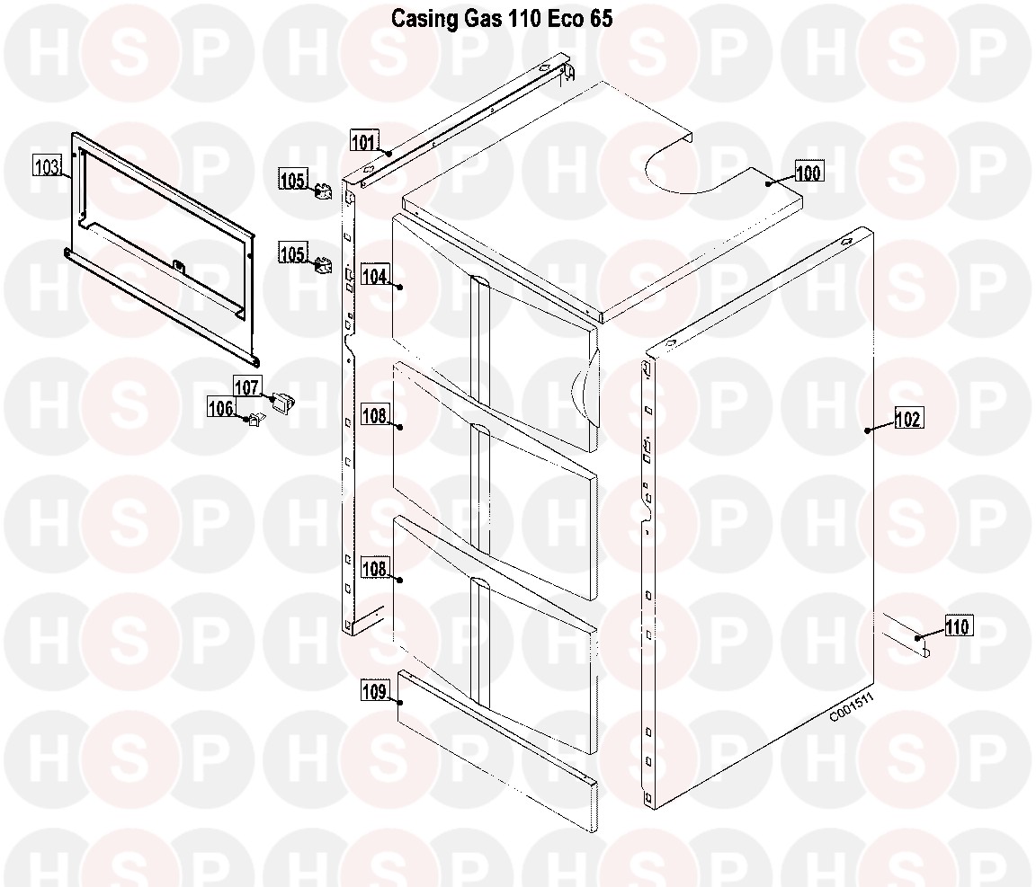 Casing diagram for Remeha-Commercial Gas 110 Eco 65Click the diagram to open it on a new page