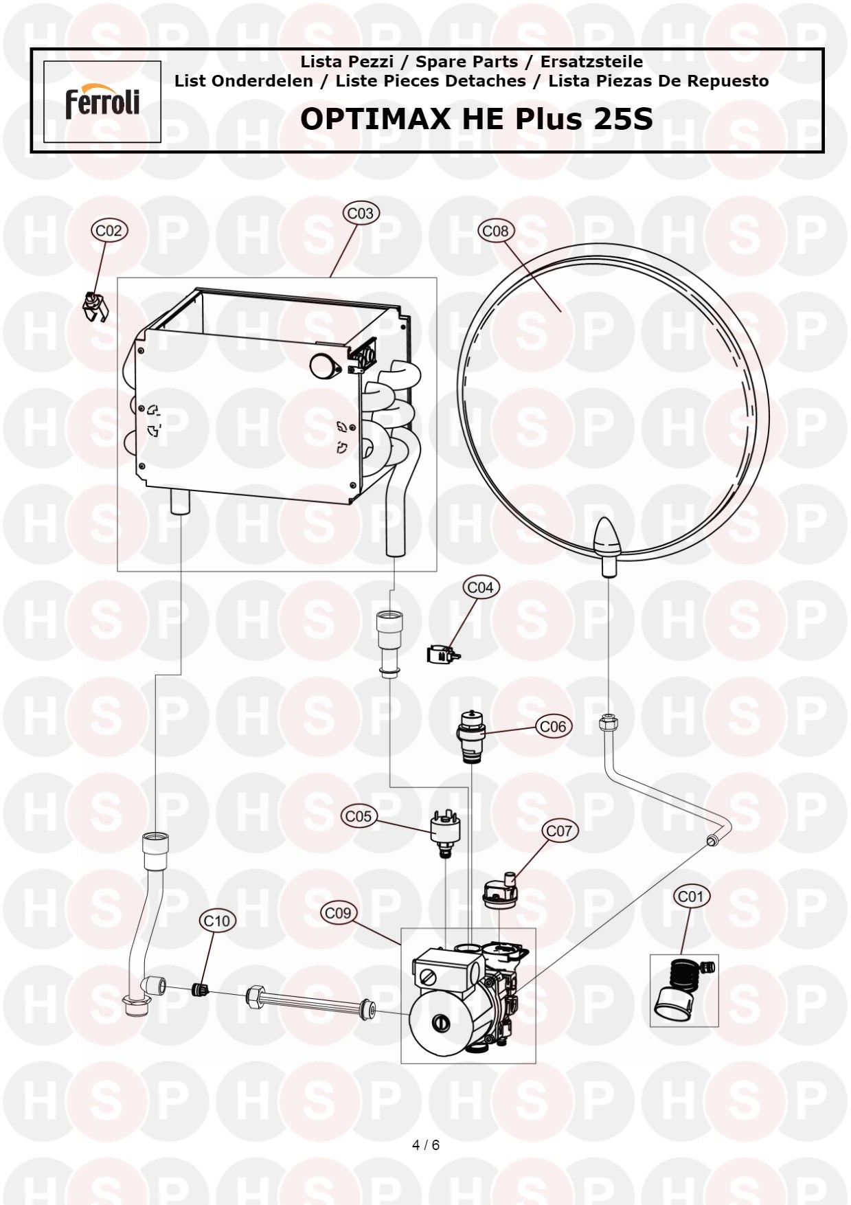 Heat Exchanger -Expansion Vessel diagram for Ferroli Optimax HE Plus 25 SClick the diagram to open it on a new page