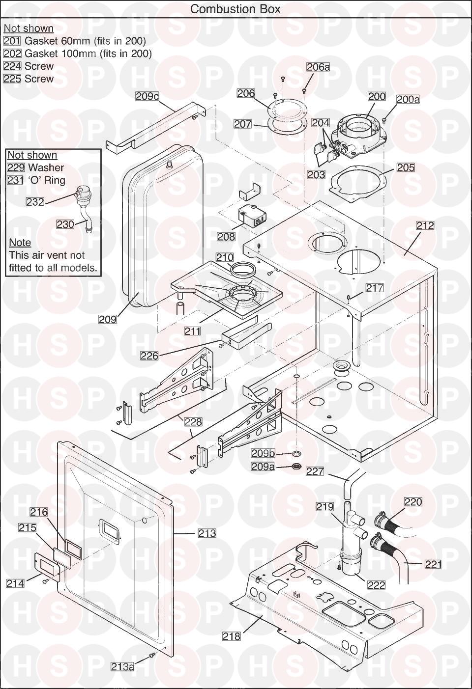 Combustion Box diagram for Potterton Gold 28 HEA Combi (Before Serial No BNF0932 & GNK0932)Click the diagram to open it on a new page