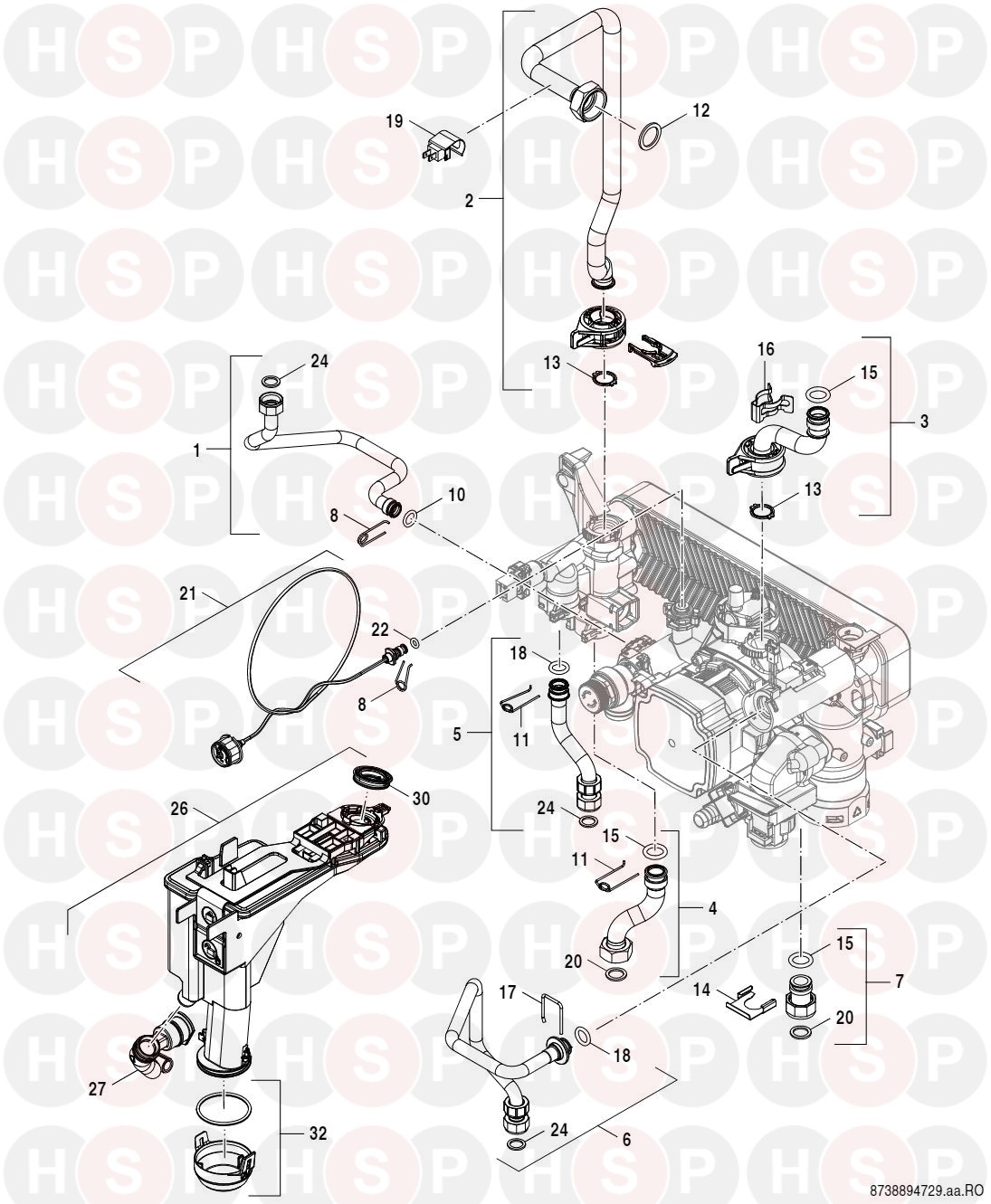 Tubes diagram for Worcester Greenstar 8000 Style GR8700IW 35 S LPGClick the diagram to open it on a new page