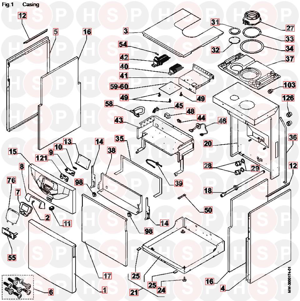 Casing diagram for Potterton Commercial Sirius 3 FS50, FS70 iss 01Click the diagram to open it on a new page