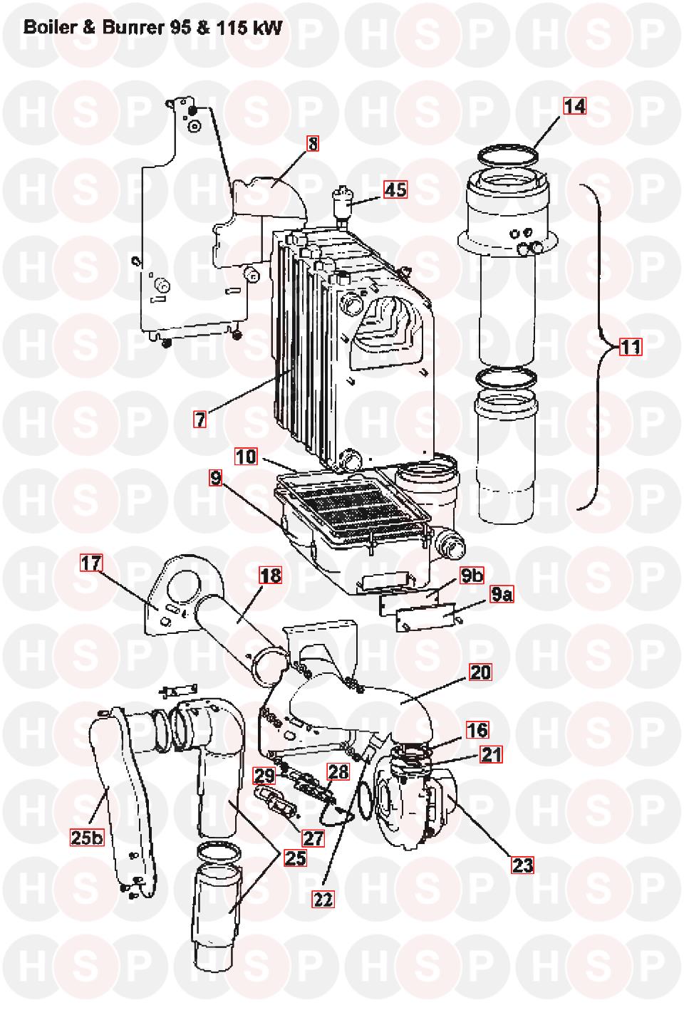 Boiler And Burner diagram for Potterton Commercial Paramount 3 95-115 kW (Issue 12)Click the diagram to open it on a new page