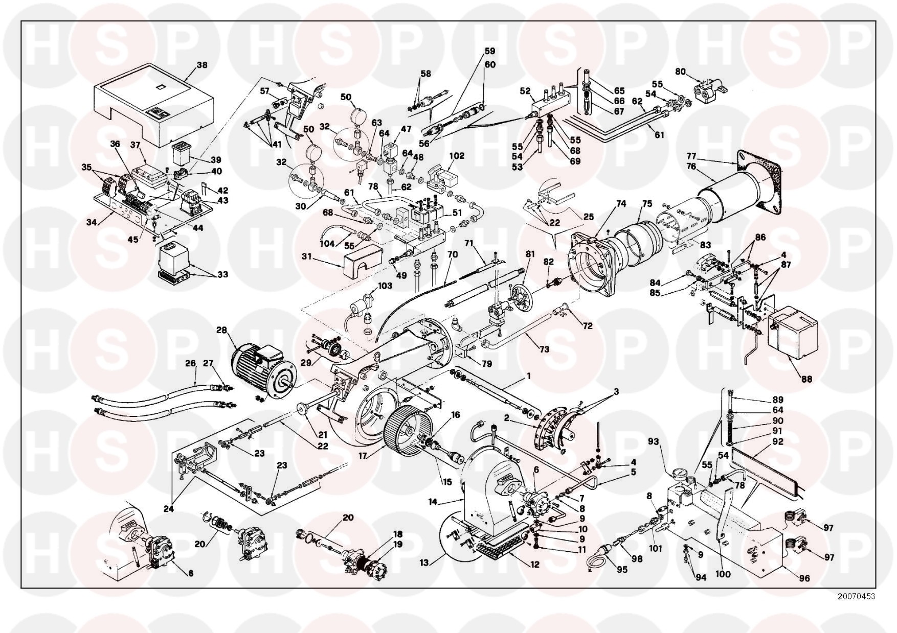 Exploded View diagram for Riello Press 450 P/NA 3808529 (Type 8529D)Click the diagram to open it on a new page