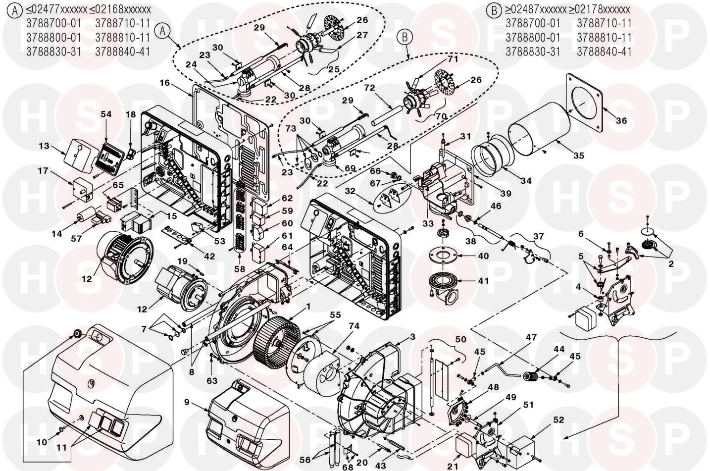 Riello Burner RS 34/M MZ diagram for Riello RS 44/M MZ 3788830 (Type 875 T)Click the diagram to open it on a new page