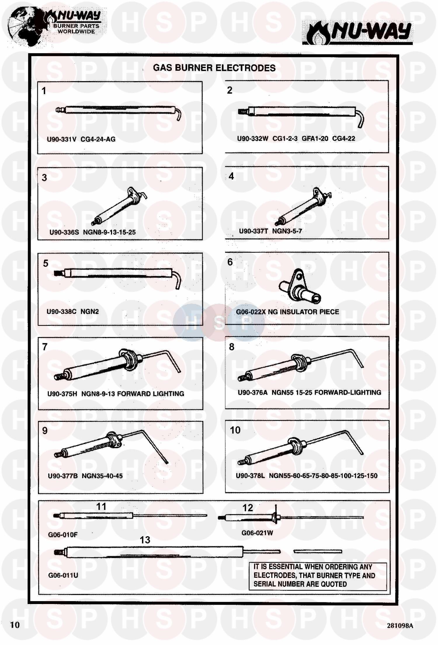10 Part number U90378L, NUWAY ELECTRODE FOR NG55-100 A4-3143 NUWAY ELECTRODE FOR NG55-100 A4-3143