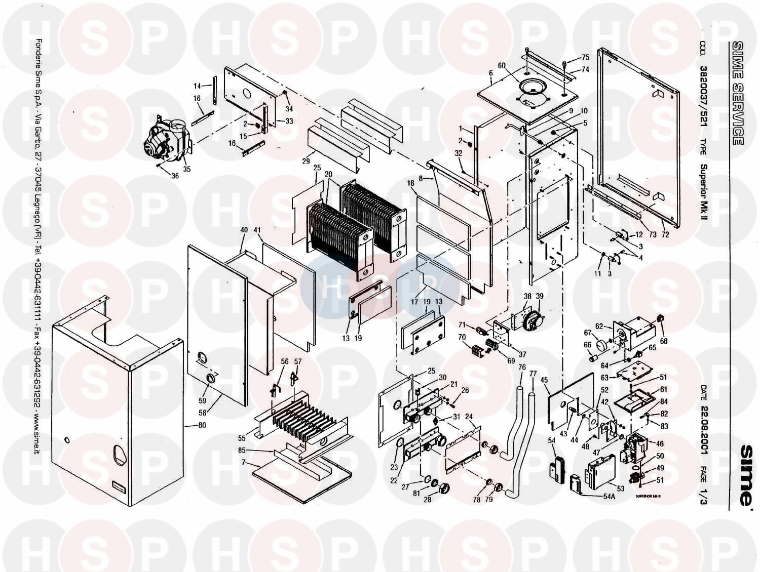 Boiler Assembly diagram for Sime Superior MKII 90Click the diagram to open it on a new page