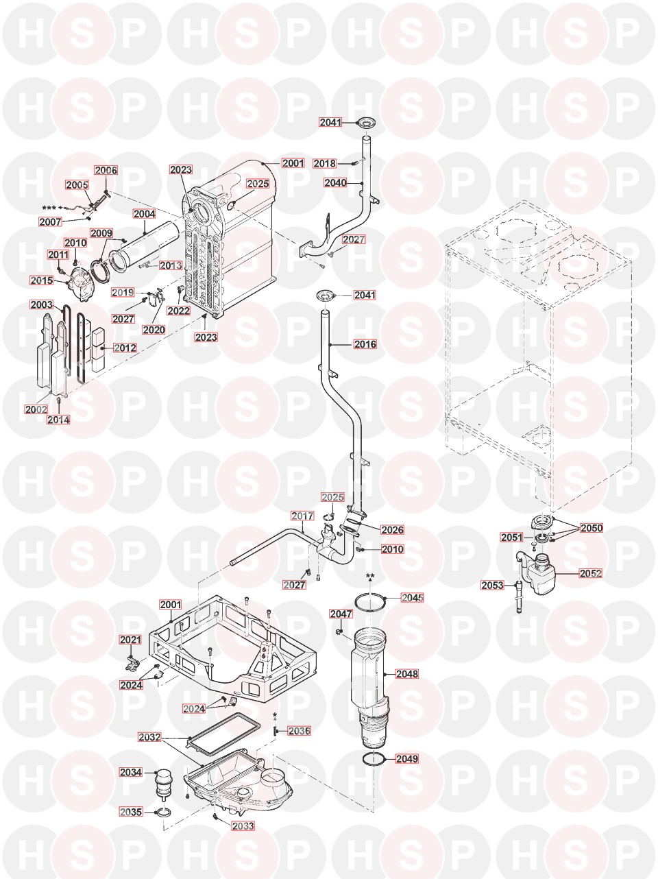 Heat Exchanger diagram for Remeha-Commercial Gas 220 ACE 160 kW AFTER SERIAL NO. STARTING 20251Click the diagram to open it on a new page