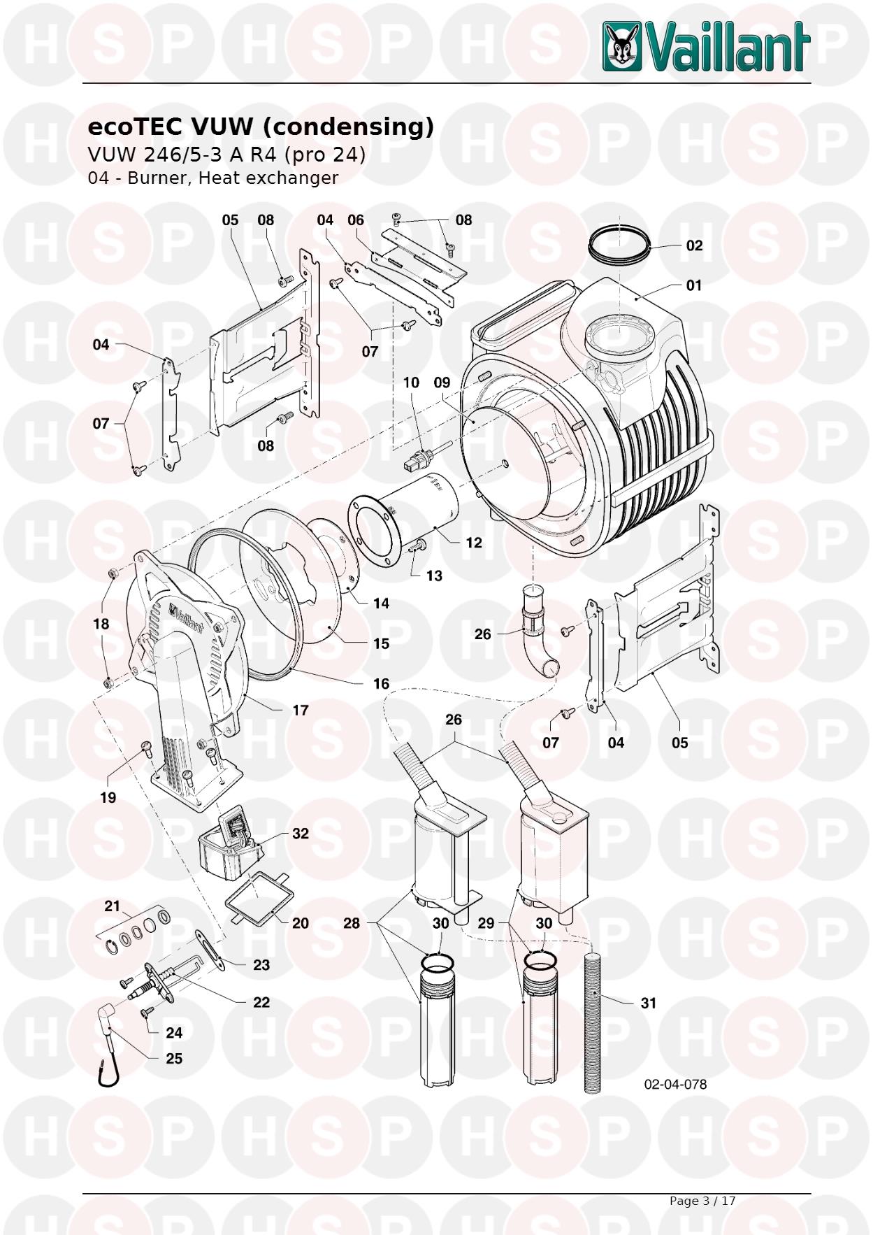 04 Burner Heat Exchanger diagram for Vaillant Ecotec Pro 24 VUW 246/5-3 R4 (2015-2017)Click the diagram to open it on a new page