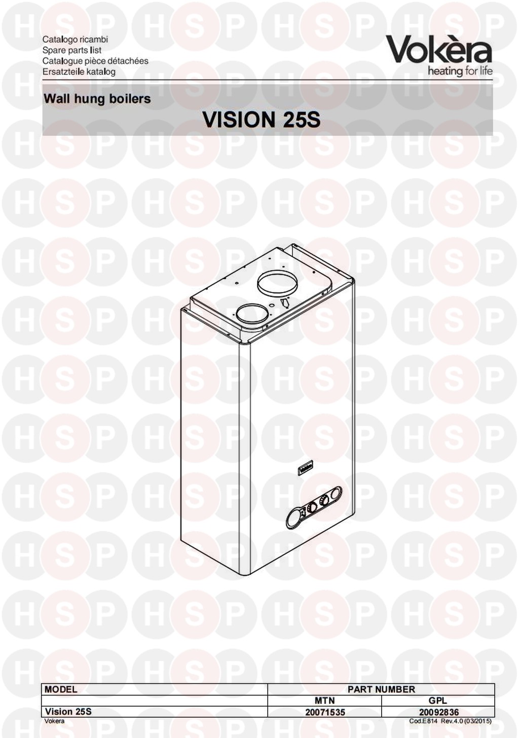 Appliance Identification diagram for Vokera Vision 25S Rev 4 (03/2015)Click the diagram to open it on a new page