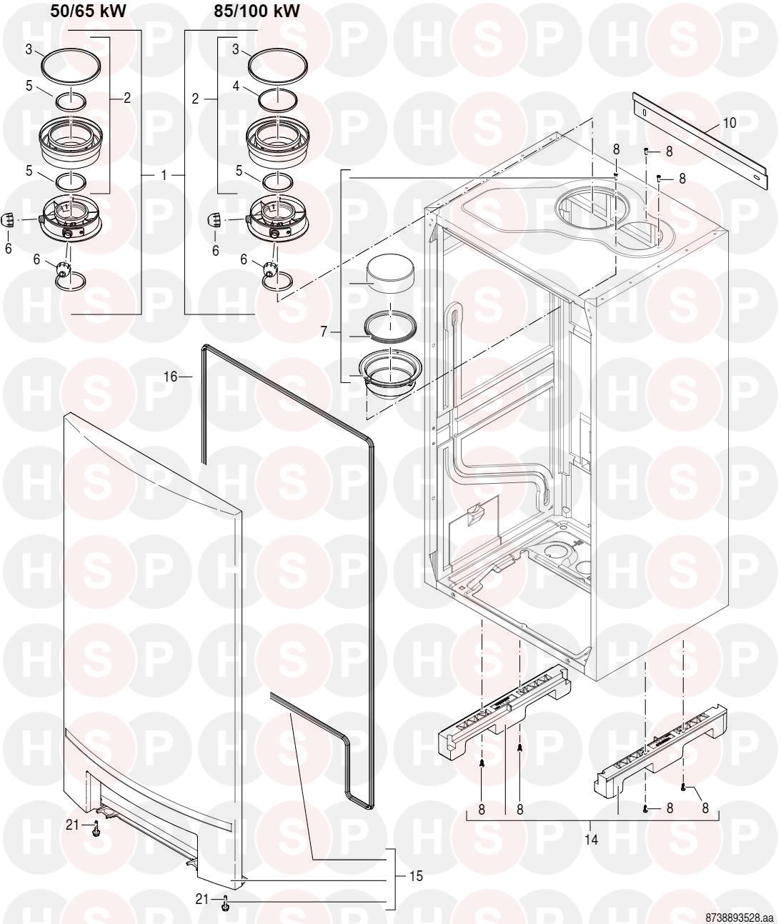 Casing diagram for Worcester GB162 V2 85KWClick the diagram to open it on a new page