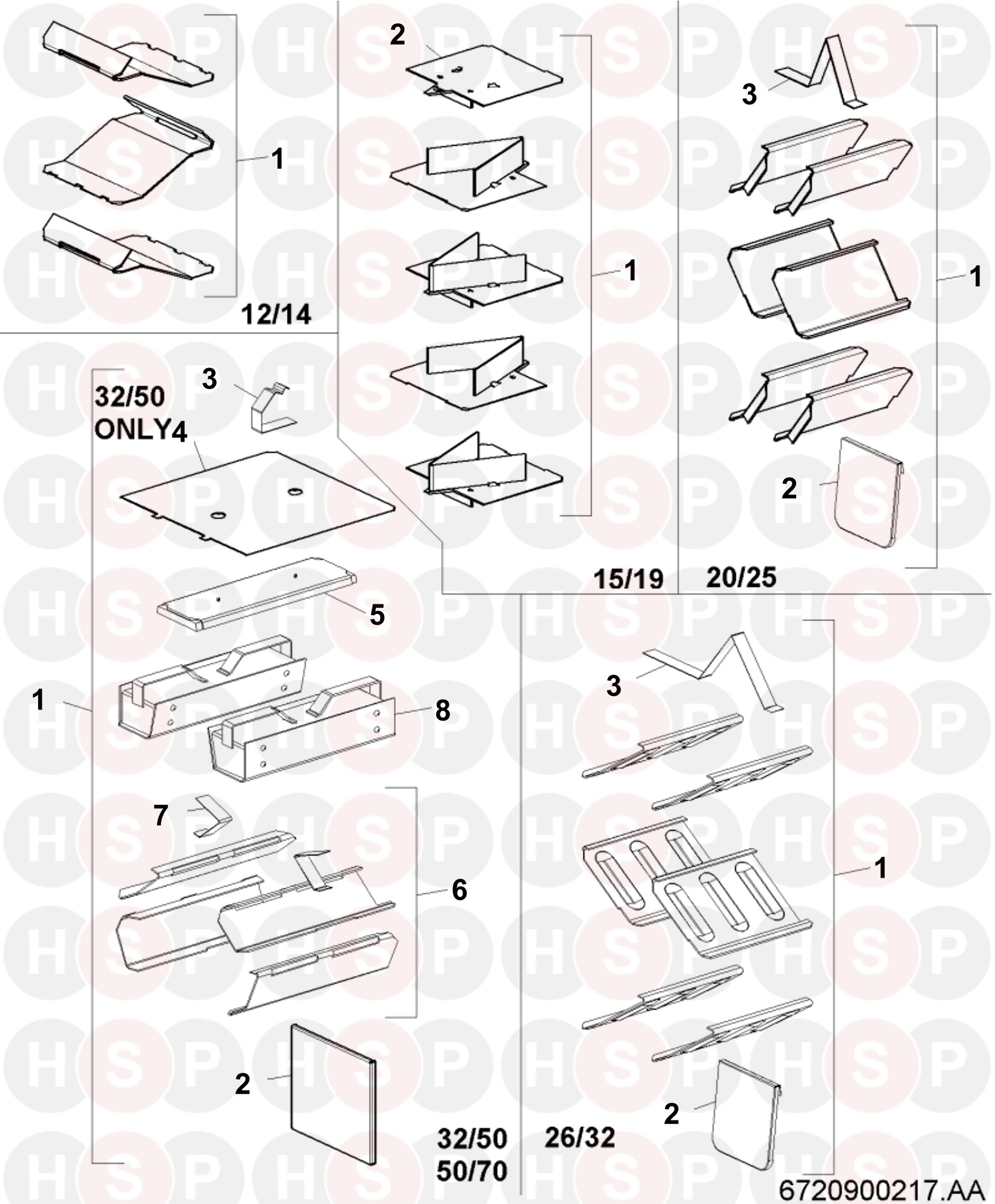 1 Part number 87161046850, BAFFLE SET X6 20-25 BAFFLE SET X6 20-25